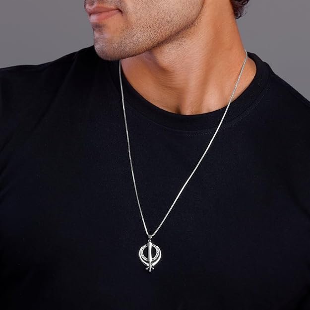 GIVA 925 Silver Sikh Khanda Symbol Pendant With Box Chain For Him