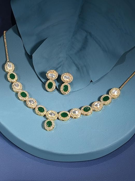 ZAVERI PEARLS Green Colour Austrian Diamond & Artificial Stones Choker Necklace