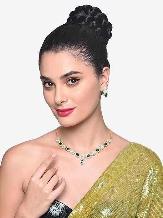 - Features :Look like a spectacular diva with this Necklace embellished with dazzling stones & Austrian diamonds. This necklace is sure to solidify your identity as a style icon. We encapsulate the beauty of jewellery in our creations to provide a variety of designs, complimenting every woman’s personality. Dazzling stones elevate this piece to a collector item in every jewellery collection. Team it with an evening saree or off-shoulder to stand out and receive many compliments.